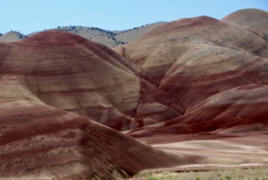 National Monuments are funny things. They’re National Parks to all intents and purposes, but they can be created by the President by Executive Order, whereas National Parks need to go through Congress, etc. This was a wheeze included by President Theodore Roosevelt when the first National Park legislation was created (if we remember correctly from the Ken Burns documentary). The Painted Hills are spectacular. They are more volcanic rocks from this huge area created by volcanoes and igneous intrusions. There were mixtures of volcanic ash and lava flows over huge periods of time. The different contents of the rocks have different colours, sometimes depending on the type of landscape that was engulfed by the ash, etc. There’s a mixture of reds, whites, greens, blues and pinks. We went to the Information Centre and then drove to the Lookout. There are several walking trails in the area (as there are all over Oregon) but sadly we didn’t have time to do the shortest one.